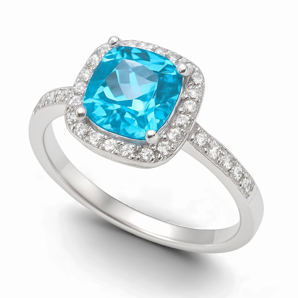 14kt white gold ladies blue topaz and diamond ring - size 7